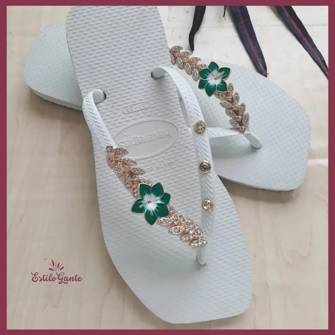Havaianas modelo Square (Quadradinha na frente) com pedrarias de luxo e piercing.